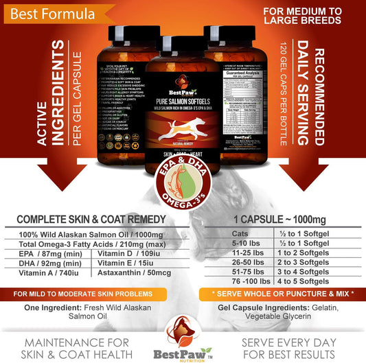 Premium Wild Alaskan Salmon Oil for Dogs & Cats - Natural Relief for Allergies, Dry Skin, Hotspots, and Joint Pain