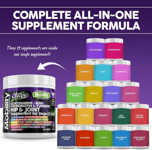 Senior Dog Hip and Joint Supplement with Glucosamine, Chondroitin, Turmeric, MSM, Salmon Oil, Collagen, and Omega 3 - Beef Flavor - 1 Pack