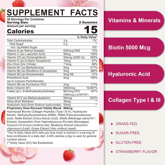 Sugar Free Women's Multivitamin Gummies with Biotin, Collagen, Hyaluronic Acid, and Vitamin Complex - Hair, Skin, Nails, Energy Booster
