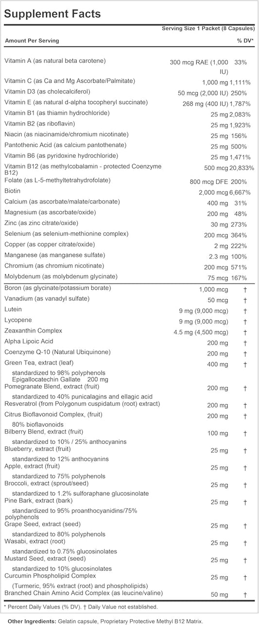 Women's Elite-200 Multivitamin 120 Packets - Potent Nutrients with CoQ10, Alpha Lipoic Acid, Resveratrol, EGCG, Pomegranate, Citrus Bioflavonoids - No Additives