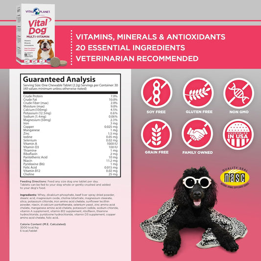 Vital Planet Vital Dog Multi Vitamin Chewable Tablet Supplement with Beef Flavor - 30 Tablets for Everyday Health