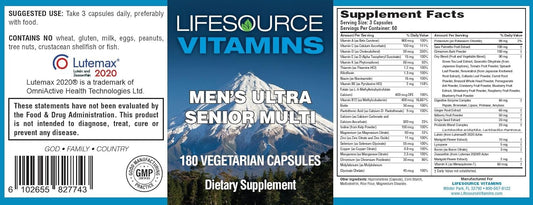 Men's Senior Multi - Vegetarian Complete Multi for Men Over 50 - 180 Capsules - 60 Day Supply by LifeSource Vitamins