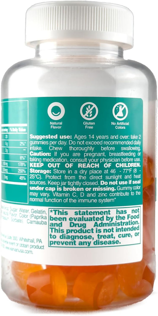 Immunity Boosting Gummy Vitamins for Adults & Teens - Chewable Multivitamin Gummies with Zinc, Vitamin C and D - Naturally Flavored & Gluten Free - 60 Count
