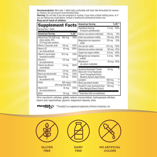 Men's 40+ One Daily Multivitamin with Vitamin B, D3, Selenium, Zinc & Real Food - Immune Support, Energy, Muscle & Bone - Non GMO, Vegetarian - 30 Tabs