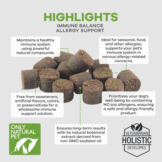 Natural Pet Immune Balance Soft Chews - Boost Immunity, Soothe Itchy Skin, Seasonal Allergies Support - Dogs & Cats 60 ct.