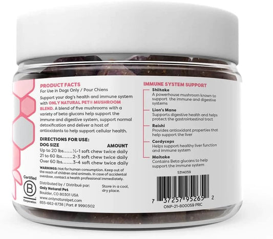 Natural Pet Mushroom Blend Immune System Support Soft Chews for Dogs - Boost Cellular, Digestive, & Liver Health - Multivitamin Beta-Glucan & Antioxidant - Bacon Flavor - 60 Chews