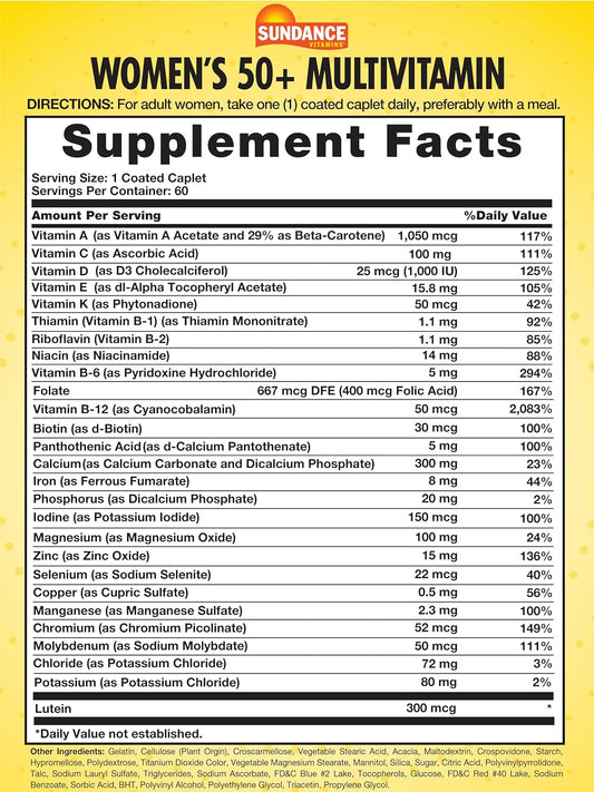 Sundance Women's 50+ Multivitamin with Multimineral Formula - 60 Caplets, Non-GMO & Gluten Free