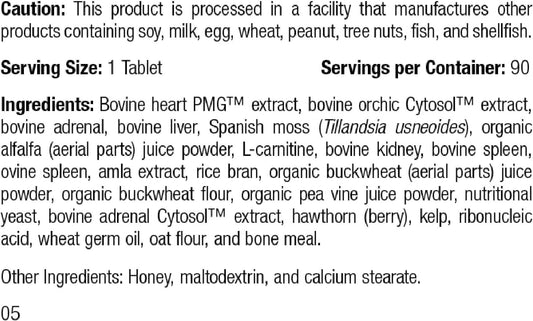 Standard Process Feline Cardiac Support Supplement - 90 Tablets - Heart Health & Function - Nutritional Supplement for Cats - Cardiovascular Support Tablet