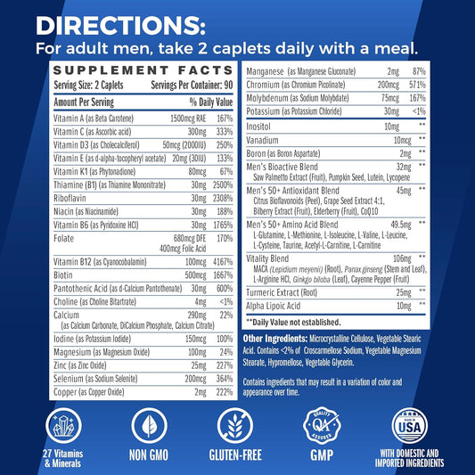 Men's 50+ Multivitamin with Minerals, Herbs, and Prostate Support - 180 Caplets