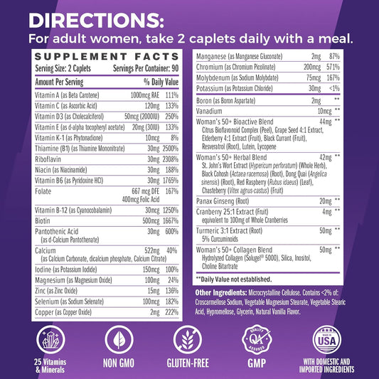 Women's 50+ Multivitamin with Minerals & Herbs for Menopause Support - Vitamin World Ultra 360, 180 Caplets
