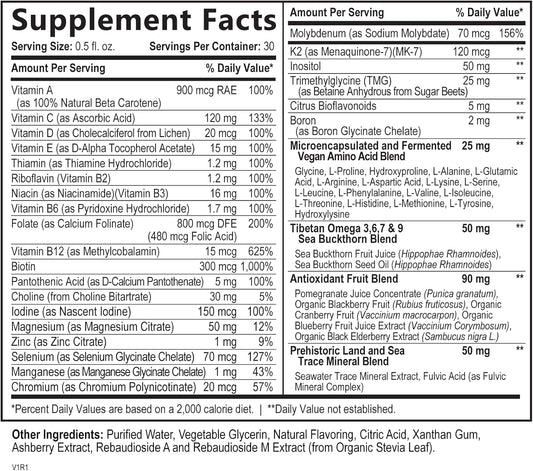 Natural Liquid Multivitamin for Women, Men, and Kids - Vegan Liquid Vitamins Supplement - Non-GMO, Gluten Free, Sugar Free - Berry Flavor - 15 Fl Oz, 30 Servings