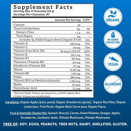 Organic Vegan Men's Multivitamin Gummies - 120 ct Strawberry Flavor - No Added Sugar - Whole Food Chewables - 30 Day Supply