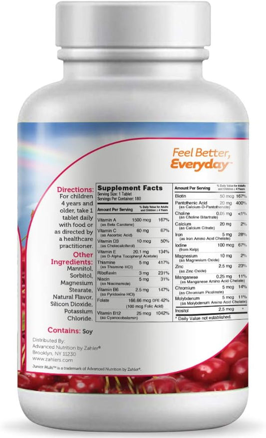 Zahler Junior Multi Chewable Tablets - Natural Cherry Flavor, 180 Count, Once-Daily Complete Multi-Vitamin