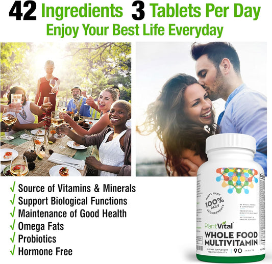 Natural Whole Food Multivitamin - 42 Superfoods, Raw Veggies & Fruits, Energy Boost - 180 Tablets