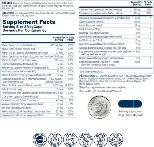 Solaray Liposomal Multivitamin for Women 50 Plus with Iron, Vitamin D, B12, Biotin & More - Immune Support & Bone Health - Vegan - 60 Servings, 120 VegCaps - Enhanced Absorption