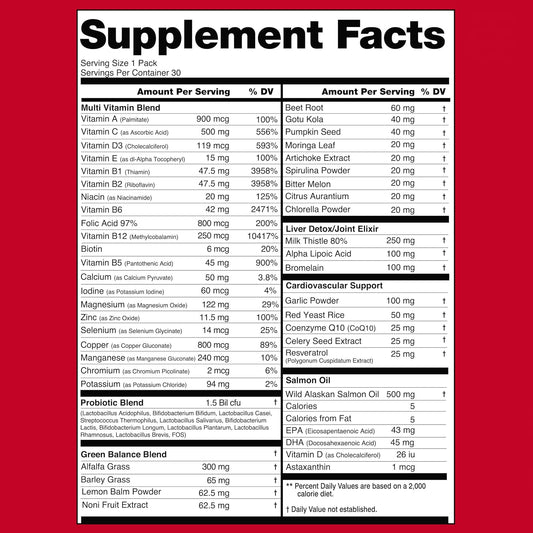 MTS Nutrition Immortal Elite Multivitamin - Daily Vitamins for Men & Women | Includes Vitamins A, C, D, E, B1, B2, B5, B6, B-12 | 30 Packets