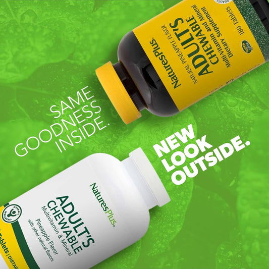 Natures Plus Adult's Chewable Multivitamin - 180 Vegetarian Pineapple Tablets - Whole Foods Supplement for Energy & Health - Gluten-Free - 180 Servings