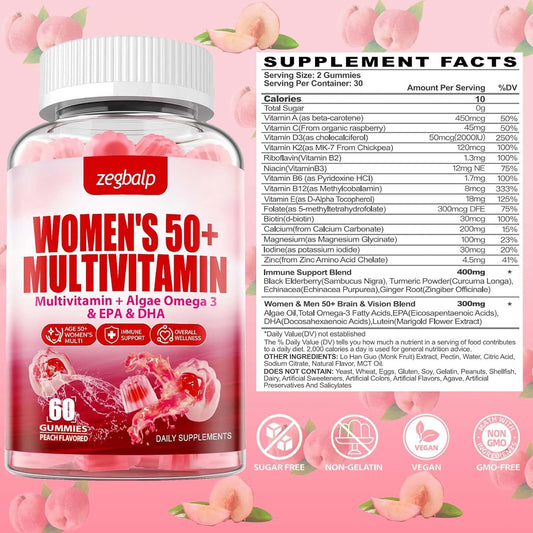 Sugar-Free Women's Multivitamin 50 Plus Gummies with Essential Nutrients for Skin, Energy, Eye, and Immune Support