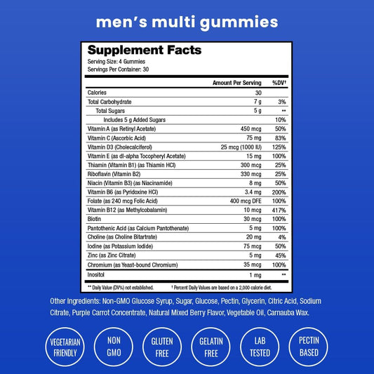 120 Count NutraChamps Men's Multivitamin Gummies with A, B, C, D, E, Biotin, Zinc - Chewable Daily Supplement for Men 14+
