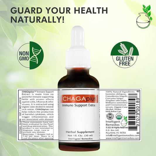 CHAGAplus Immune System Booster with Chaga Mushroom Extract, Reishi, Turmeric & Ashwagandha - 30mlVendor:Intelligent RemediesRegular price $119.69 AUDRegular priceUnit price / per-