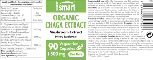 High Strength Organic Chaga Extract Capsules - 1500mg Daily Dose - Non-GMO, Gluten Free, 90 Vegetarian Capsules - Wild Harvested Mushrooms