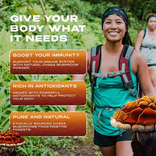 Organic Chaga Mushroom Capsules - 100 Count, 1000mg Natural Antioxidant Immune Support Supplement