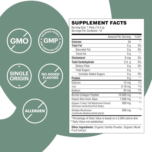 Organic Collagen Superfood Powder with Blue-Green Algae, Mushroom Extracts, and Matcha - Detox & Immunity Support, Allergen-Free & Non-GMO