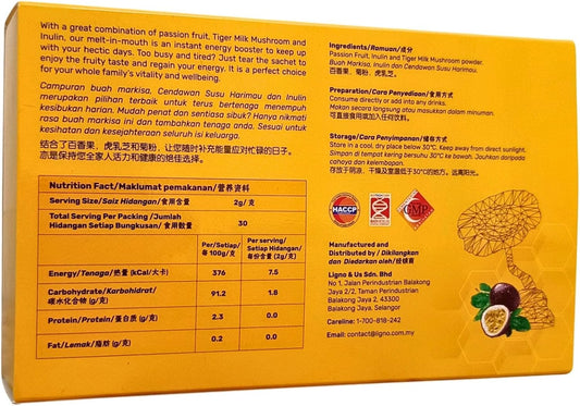 TIGERUS® Holla Tiger Milk Mushroom with Passion Fruit and Inulin - Immune Support, Digestive Health, Antioxidant Boost - 30 Sachets for Natural Wellness