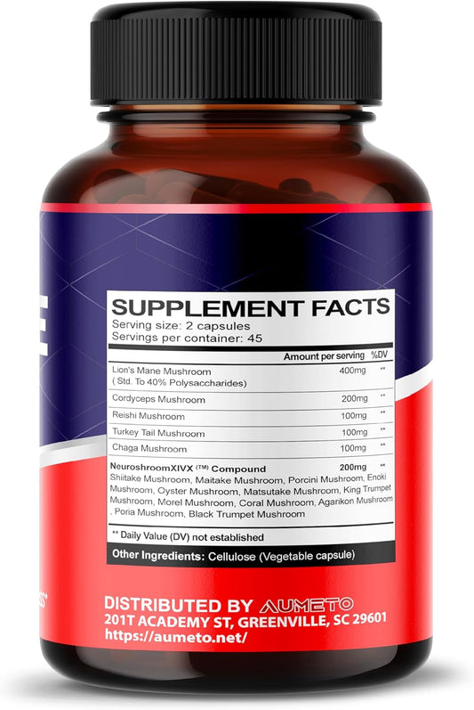 Lions Mane Supplement Capsules with Mushroom Complex - 18 in 1 Brain Supplement for Memory and Focus
