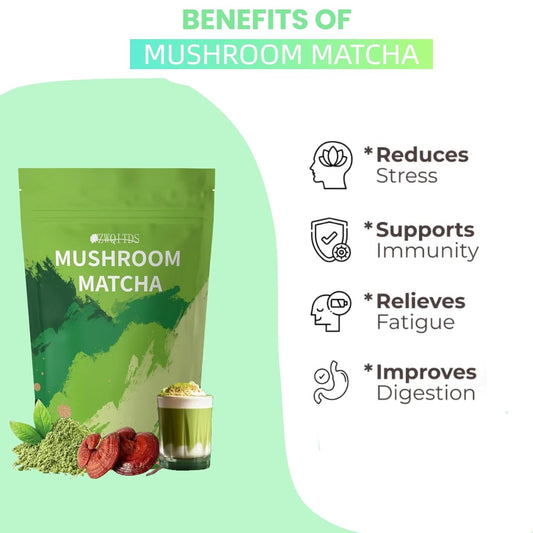 Premium Mushroom Matcha Latte Powder with Collagen for Energy, Focus, and Immunity - 30 Servings of Ceremonial-Grade Japanese Matcha