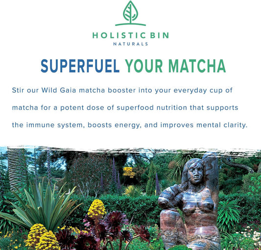 Organic Mushroom Matcha Booster with Adaptogens for Brain Support - Wild Gaia | Lions Mane, Ashitaba Leaf, and Ginseng Powder Blend