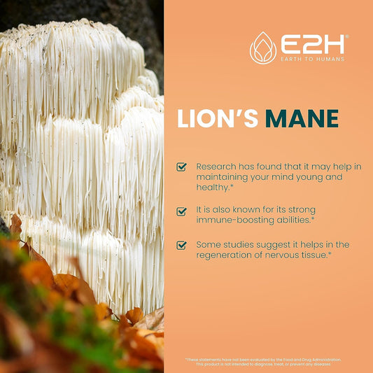 E2H Lion's Mane & Cordyceps Liquid Supplement for Mental Clarity, Memory, Energy, Stamina & Immune Support - Non-GMO, Vegan - 4 Fl Oz Bundle