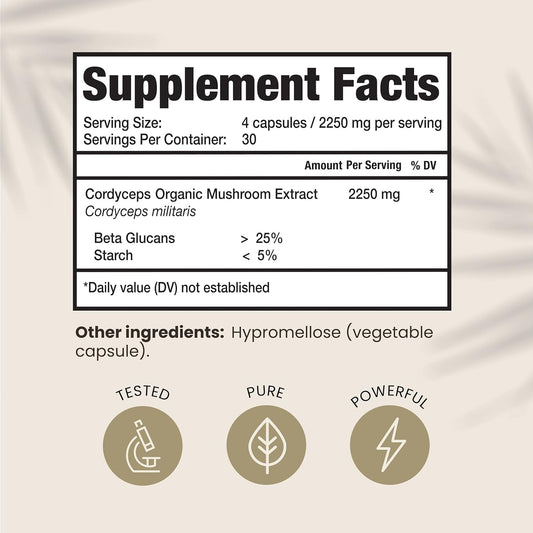 High Strength Cordyceps Capsules with 1000mg Extract & BioPerine for Vitality - 60 Capsules