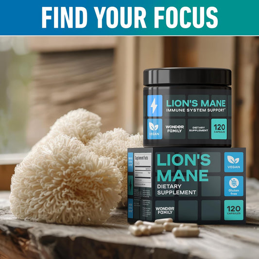 1000MG Lions Mane Mushroom Supplement Capsules for Focus, Energy, Recall, Performance - Memory Support - 120 Capsules