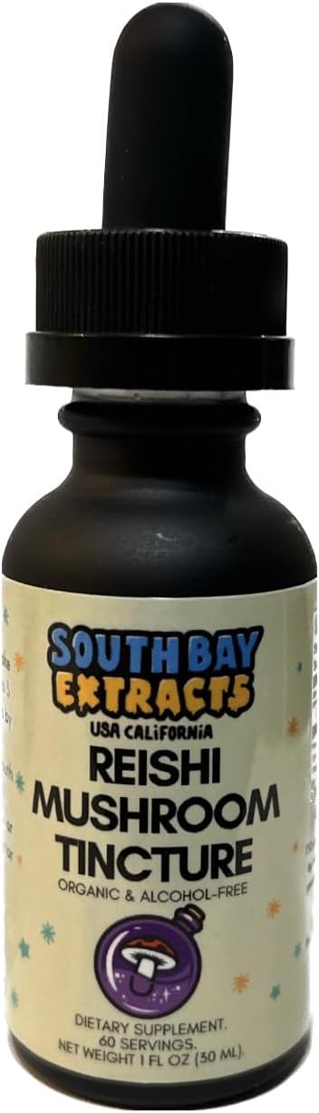 Organic Reishi Mushroom Tincture Drops for Stress Relief - Alcohol-Free Liquid Elixir for Relaxation - Vegan and Non-GMO - Promotes Natural Calmness from South Bay Extracts
