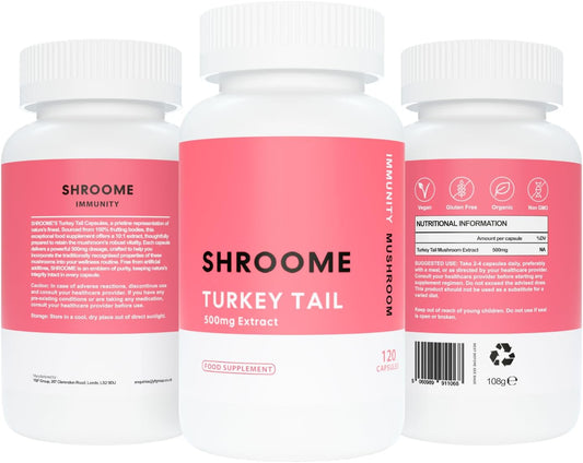 Premium Turkey Tail Mushroom Capsules | 120 Capsules | High Strength Beta Glucans | Vegan Supplement | 100% Fruiting Bodies | No Additives