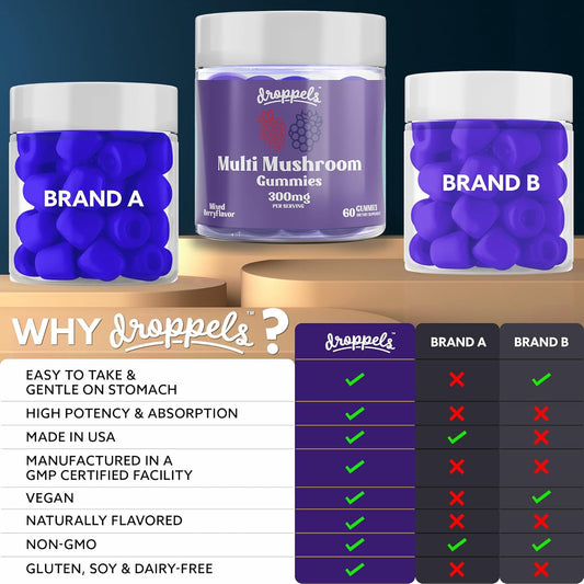 Vegan Multi Mushroom Gummies with Maitake, Shiitake, Turkey Tail, Chaga, Reishi & Lion's Mane | Non-GMO Pectin-Based Extracts | Mixed Berries Flavor, 60 Count