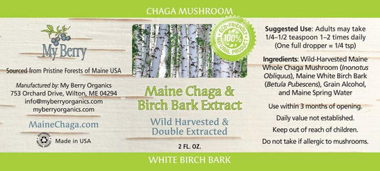 Wild Harvested Berry Chaga Mushroom Extract Liquid, Double Extracted, 2oz, USA & Canadian Grown, Pesticide-Free