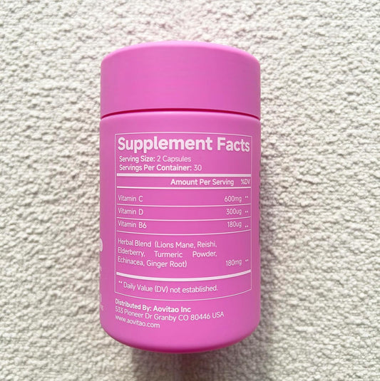 60 Capsules AOVITAO Herbal Immune Defense Vitamin Supplement with Lion's Mane, Reishi, Chaga, Cordyceps, Turkey Tail & More for Boosting Immunity