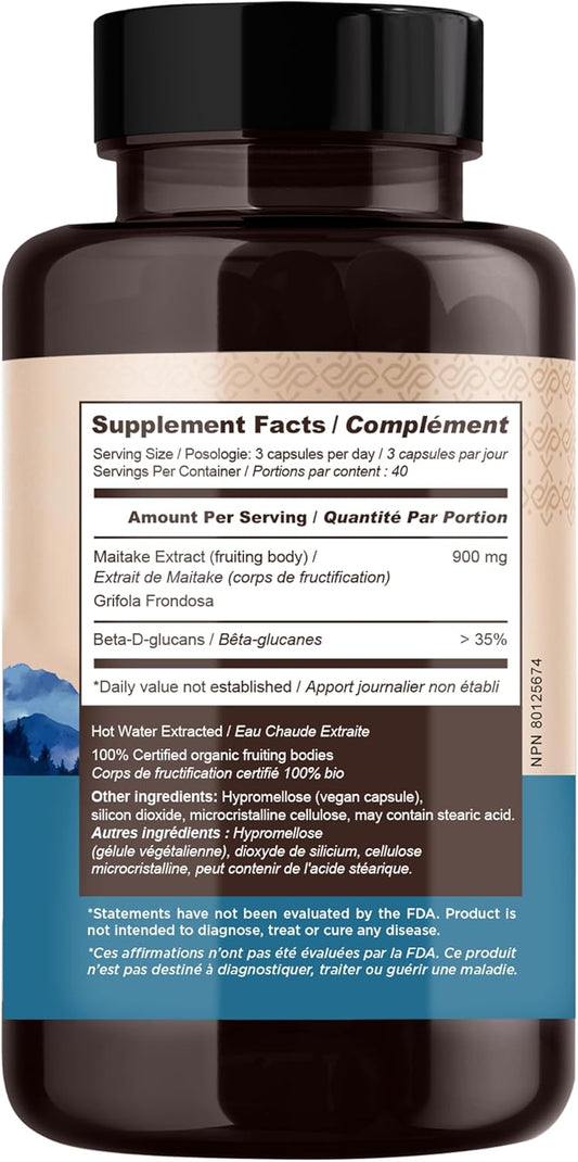 Organic Maitake Mushroom Capsules - Ultra Concentrated Supplement for Balanced Immune System - 100% Fruiting Body - 120 Capsules