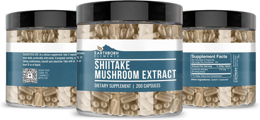 Pure Shiitake Mushroom Extract Capsules - 200 Count, Undiluted & Additive-Free by Earthborn Elements