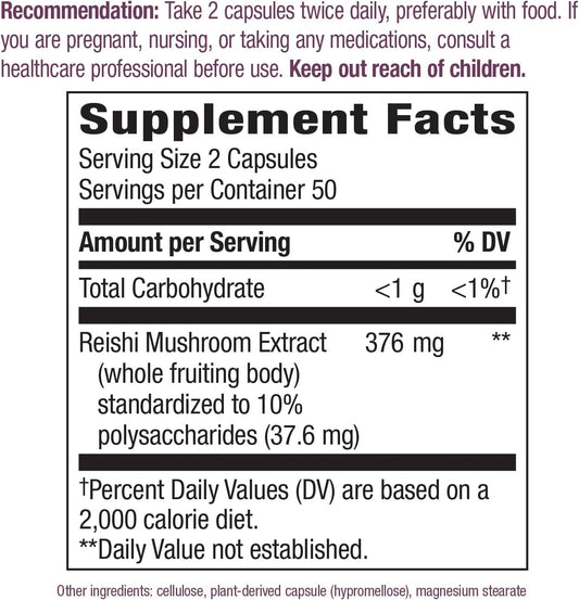 Nature's Way Reishi Mushroom Capsules - Immune Support, Non-GMO, Adaptogenic - 100 Count