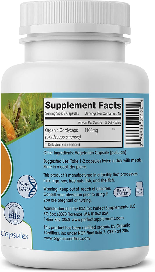 Organic Cordyceps Supplement - 90 Vegetable Capsules - Boost Energy, Endurance & Strength - Adaptogenic Herbal Formula