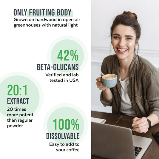 Organic Mushroom Coffee with Grass-Fed Collagen, Beta-Glucans, and Vitamins for Energy, Focus, and Immunity - 30 Servings