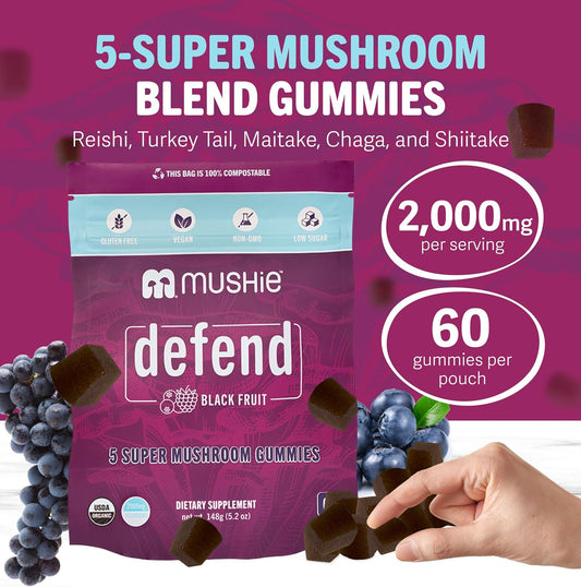 Organic Super Mushroom Complex Gummies with 2000mg Reishi, Turkey Tail, Maitake, Chaga & Shiitake - Stress, Gut Health & Immune Support - Vegan, Gluten-Free - 60 Count
