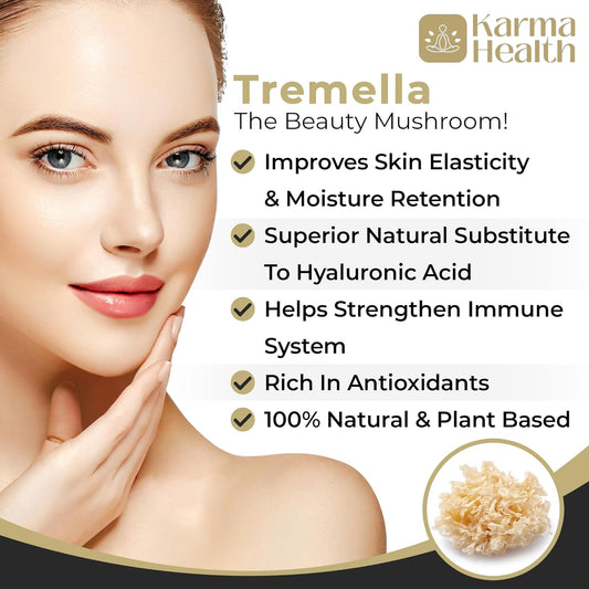 Organic Tremella Mushroom Capsules with 25% Beta Glucan - Vegan & GMO Free Supplement for Health and Wellness