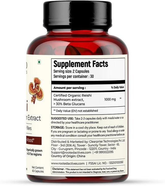 USDA Organic Reishi Mushroom Extract Capsules - 60 Veg Caps, 500 mg - Promotes Heart Health, Stress Relief, Liver Support - 30% Beta Glucans