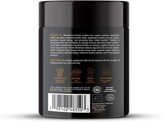 Immune System Support Dietary Supplement with Cordyceps, Reishi, Shiitake & Lions Mane - 90 Capsules, 45g