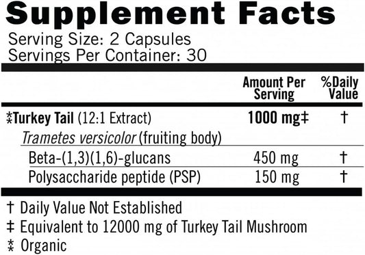 Organic Turkey Tail Mushroom Supplement - High Strength 12:1 Extract - 60 Vegan Capsules - Rich in Beta-D-Glucans - EVERSIO WELLNESS Defend Now