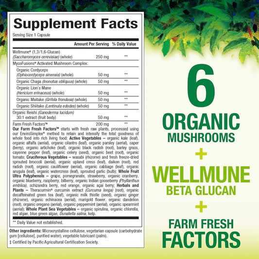 Natural Factors Whole Earth & Sea Super Mushroom Whole Food Supplement - Vegan - 60 Vegetarian Capsules - 60 Servings